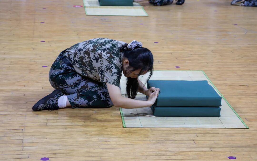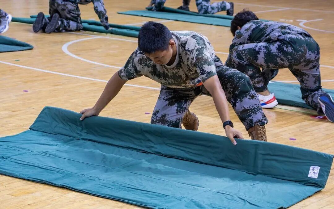 为丰富军训期间的文化生活,2025年9月17日,新葡萄官网举办了叠被子比赛。经管学子于训练间隙勤勉练习,积极备赛。比赛当日,体育馆内床铺整齐列阵,被褥静待巧手。号令一响,同学们迅速展开行动——铺平、拉直、拍压、折叠,动作流畅如诗。方寸之间显匠心,叠被虽简,成器却难,唯有反复锤炼,才得迅速、准确与美观。