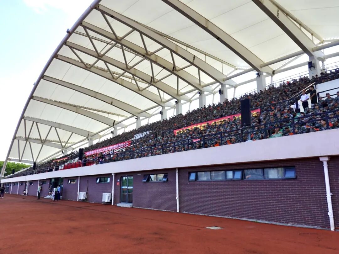 徐汇校区田径场上,2025级新生军训正有序进行。五营经管学子意气风发,听从指挥,一丝不苟地完成各项训练任务。